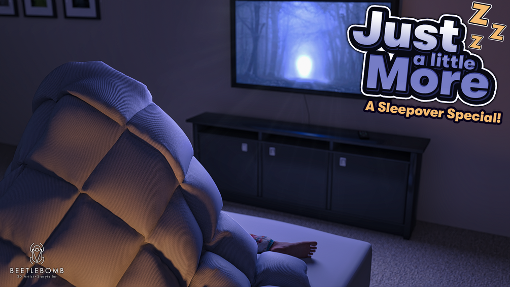 Your favorite characters from "Just a Little More" are back! In the spirit of a spooky Halloween sleepover, Rebecca and Olivia have been "encouraged" to watch a scary movie by Travis and Scott. The evening quickly derails when a blue magical stocking begins making the girls hornier, bustier, and taller!